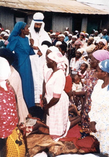 1988年6月11日土曜日、マイトレーヤはケニアのナイロビ郊外で開かれた野外での祈りと癒しの集会に奇跡的に現れ、6,000人の人々に語りかけました。長身で白い衣をまとったその人物を即座に「イエス・キリスト」と認識した群衆は、感動に打ちひしがれてひれ伏しました。現場で撮影された写真は、CNNやBBCなど世界中の主要なニュースメディアによって報道されました。