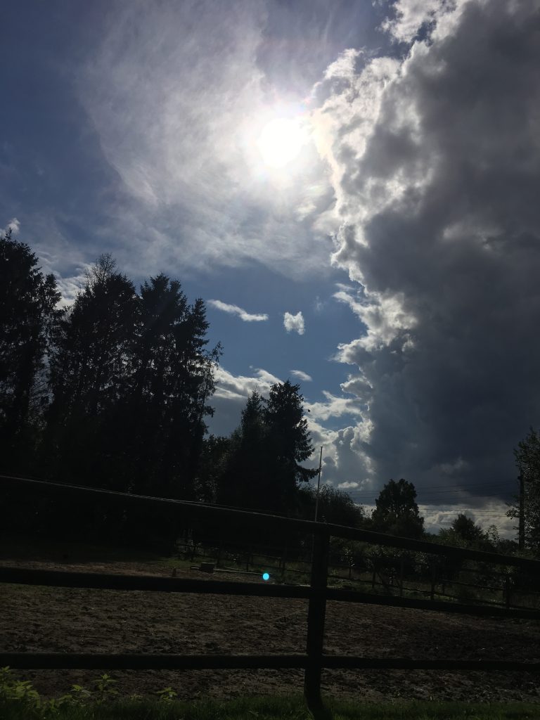 その時に私は空を見上げました。晴れ間が広がっていきました。 その周囲全体は雲に覆われていましたが、 晴れた青空の真ん中にこの雲が形を作っていくのが見えて、文字の『M』 という形になったのです。