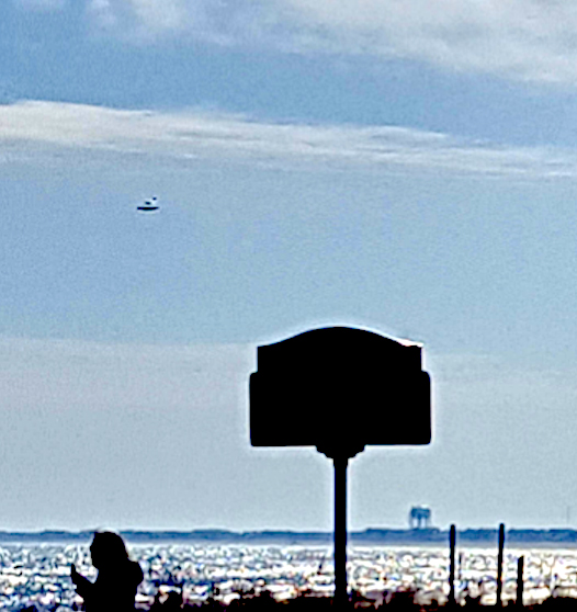 アメリカ──2022年3月16日、ニュージャージー州ハモントンで観光客が海浜地帯の写真を撮った。のちに見返すと、そのうちの1枚に低空を飛ぶ、ドームが上についた円盤型の物体が写っていた。